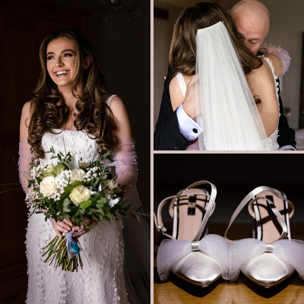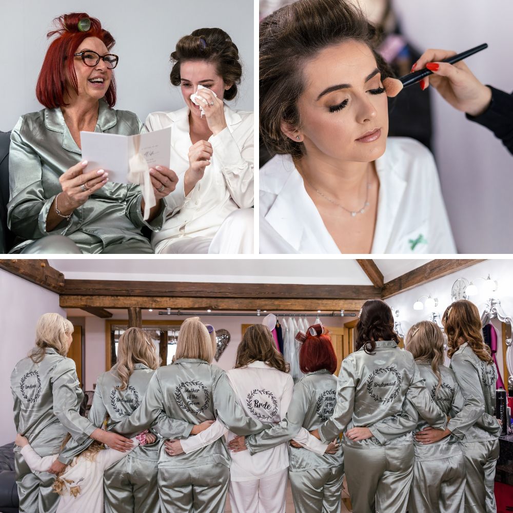 At 9am, the pamper room was perfectly set for Maisie and her bridal party to unwind, relax and enjoy the morning. With glasses of Bucks Fizz in hand to ease any pre-wedding nerves, they laughed together as the makeup and hair team worked their magic. The cold December morning felt nostalgic and magical-just a few days before Christmas, the girls shared memories that made the atmosphere even more special.