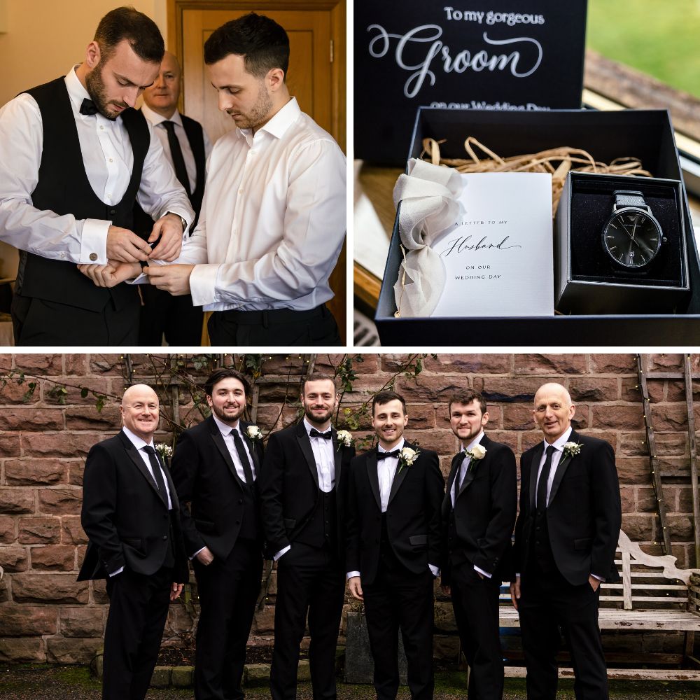 The suits were chosen to complement the theme, with George and his groomsmen looking incredibly sleek in their classic black-and-white attire. With everything falling into place, the morning became a moment to savour- those final quiet minutes before the all-important ‘I do’s.’
