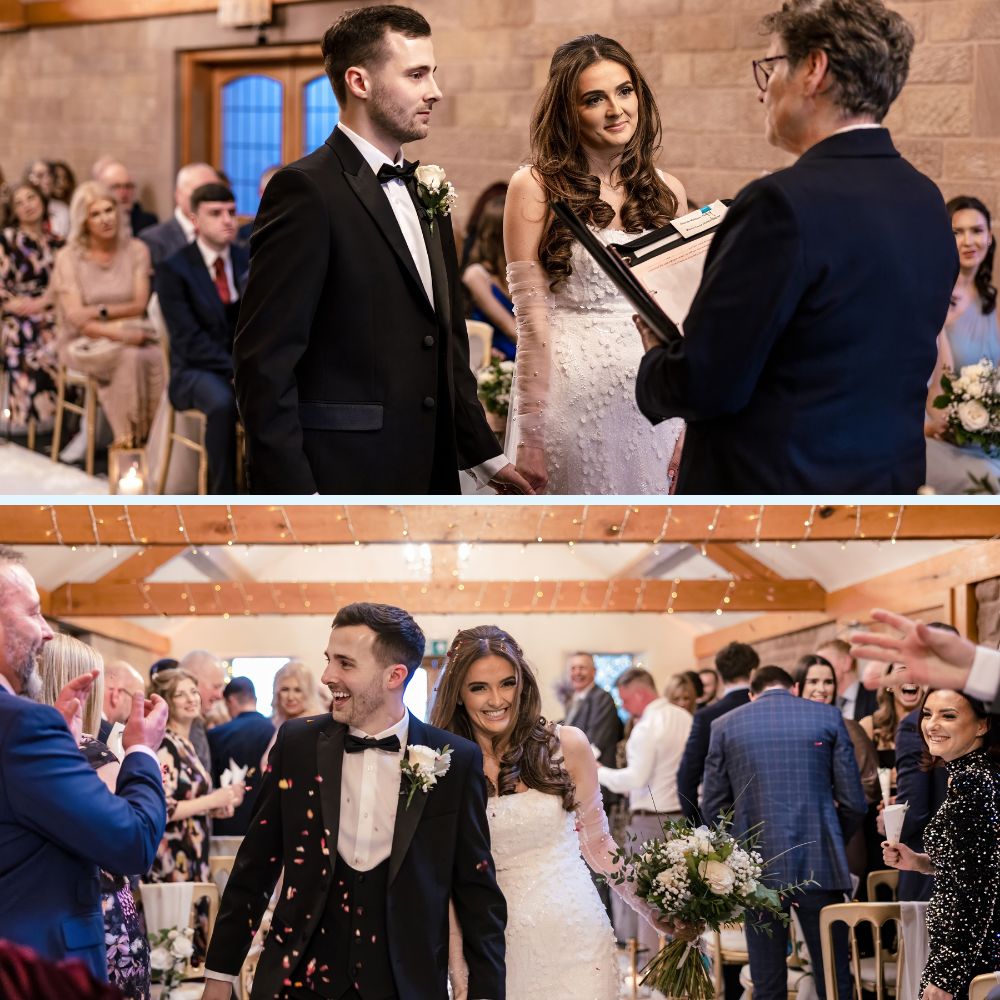 After signing the register, Maisie and George made their joyful exit, greeted by a shower of confetti- an unforgettable moment captured perfectly by SMH Photography. Guests then enjoyed their reception drinks, soaking in the magic of the day after watching the newlyweds say their heartfelt ‘I do.’