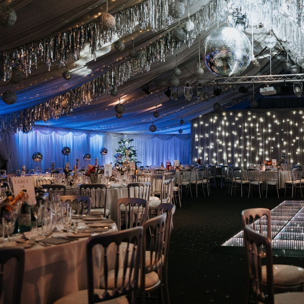 The show-stopping feature of the room was a giant glitter ball by Lightech, illuminated with powerful colour-changing spotlights. As it rotated and shifted through hues, it created an effective, retro-style disco lighting effect. Silver, sparkly tassels cascaded from above, forming a dramatic ceiling display!