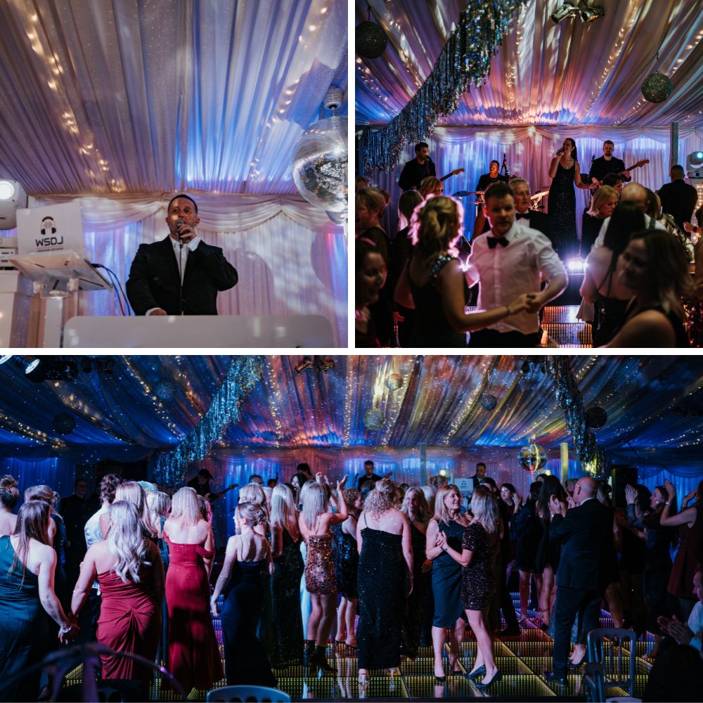 Wedding Sounds’ sparkly DJ deck and setup elevated the scene, while Nova The Collective took to the stage to entertain guests with an irresistible mix of 70s classics and modern hits, keeping the dancefloor packed all night long.
