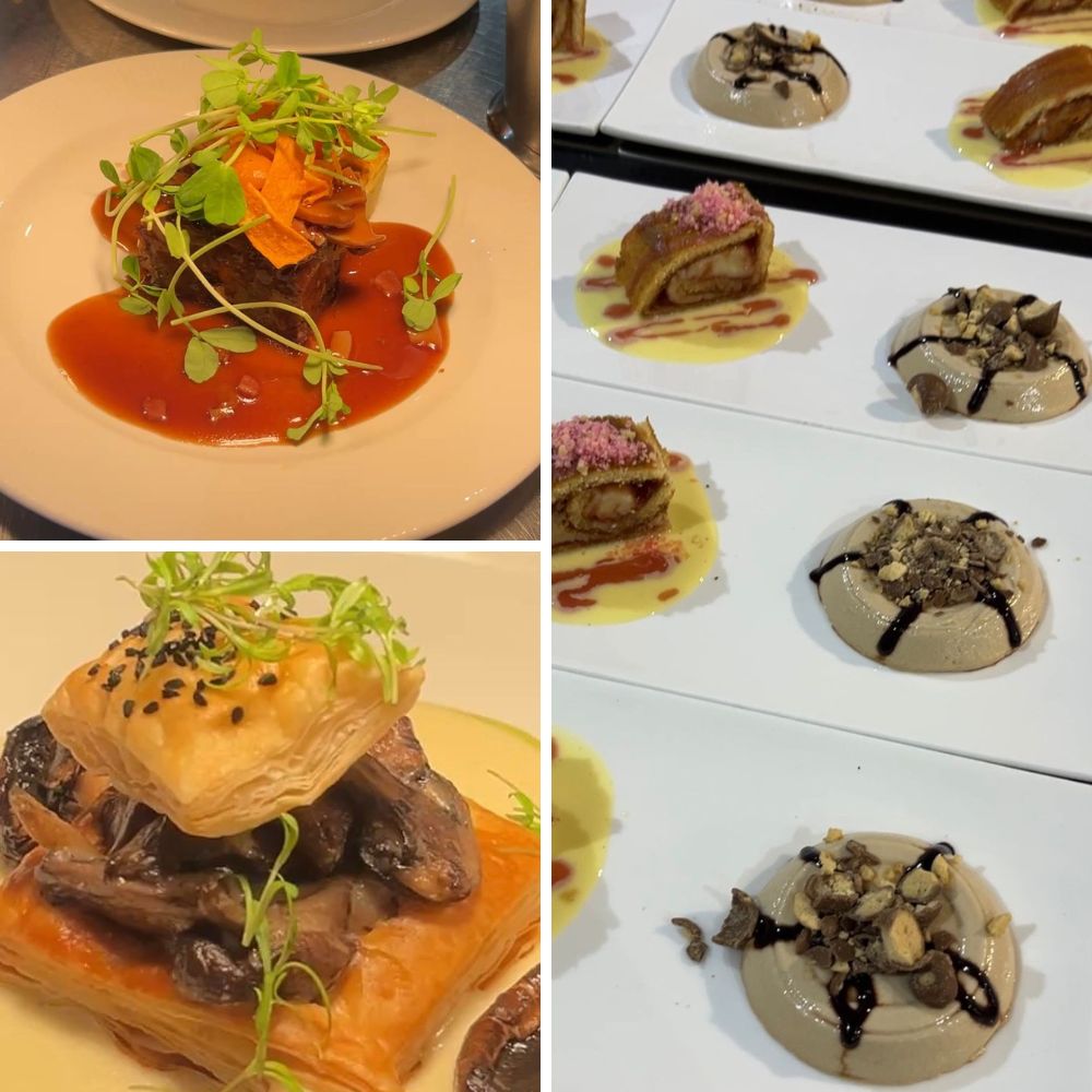 To finish: To round off the magnificent menu, a showstopping dessert duo was served: ovaltine mousse, cocoa sauce, meringue star, malted honeycomb and rhubarb & custard swiss roll, rhubarb & custard popping candy, crème Anglaise.
