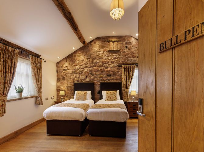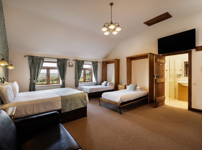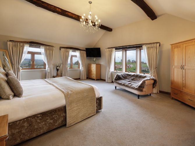 Dance the night away!Unwind in style in one of our 15 luxurious converted accommodation rooms, including a romantic honeymoon suite reserved just for you and your partner on the night of your wedding – just a few steps from your final dance, with views across all three counties. Reserved for you and your guests to book (until six months before your wedding), we offer a selection of room types, including double, triple, quad, and family rooms.
